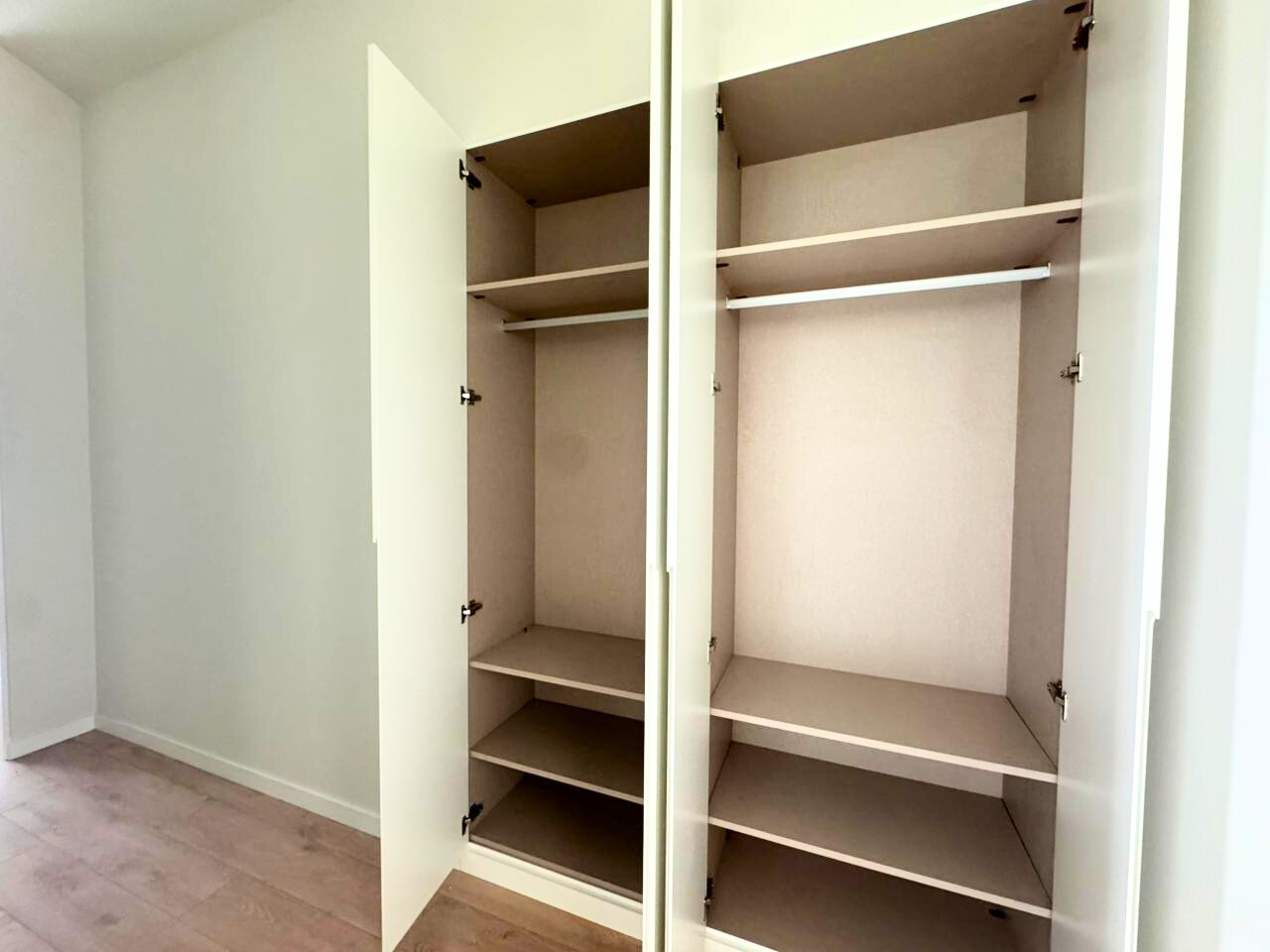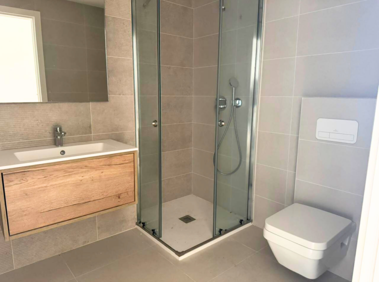 La suite principal cuenta con vestidor y baño en suite, mientras que el segundo dormitorio dispone de armarios empotrados. Ambos baños presentan acabados actuales y de calidad.