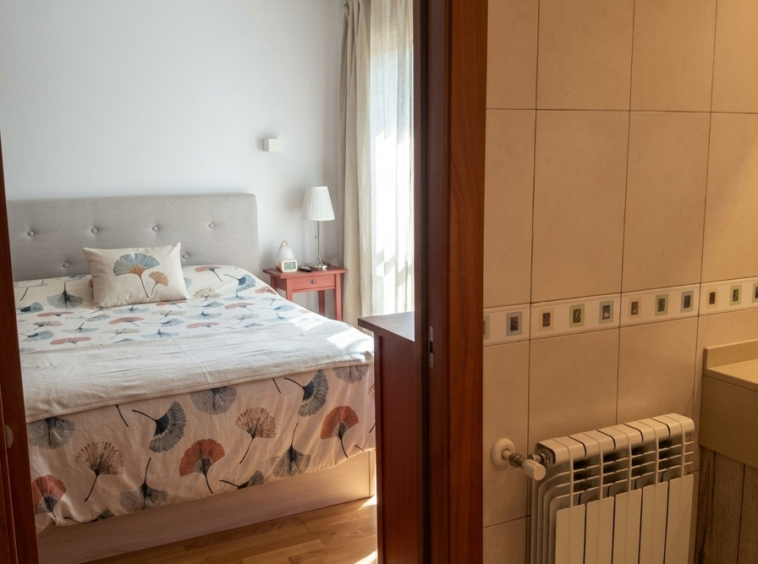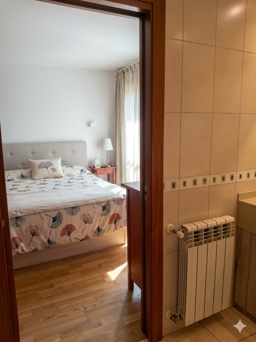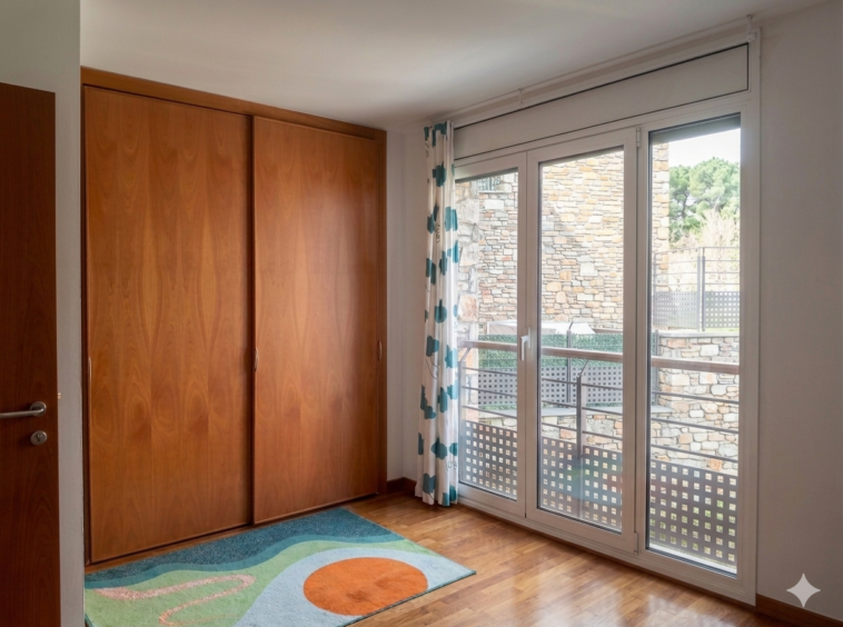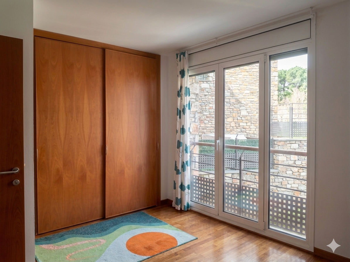 La calidad de esta propiedad es evidente en cada detalle, desde el elegante suelo de parqué hasta los cerramientos de alto rendimiento de la marca Technic. Estas ventanas de doble vidrio abatibles cuentan con persianas eléctricas, asegurando un aislamiento térmico y acústico superior que garantiza el silencio y la eficiencia energética en todo el hogar.