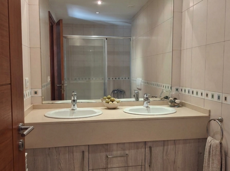 Descendiendo a la planta inferior, descubrimos la zona de descanso, pensada para ofrecer la máxima privacidad y bienestar. Aquí encontramos dos amplios dormitorios exteriores dobles, ambos configurados como suites, lo que garantiza total independencia al disponer de sus propios baños privados completos, uno de ellos equipado con ducha y el otro con una relajante bañera. Esta zona de la vivienda aprovecha cada metro cuadrado gracias a una generosa zona de almacenamiento bajo la escalera y un lavadero cerrado, perfecto para mantener la organización impecable.