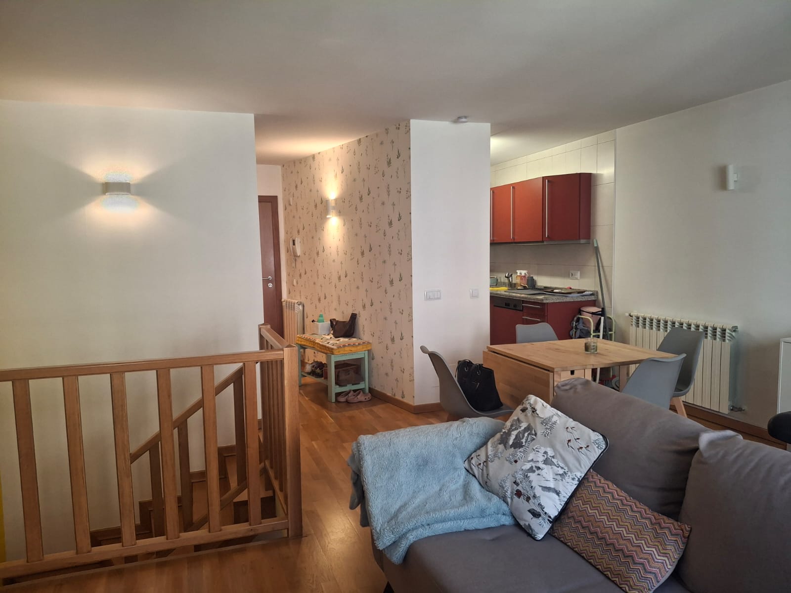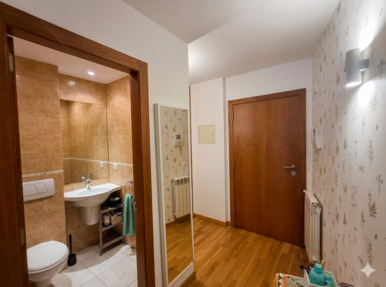 Al acceder a la planta de entrada, te recibe un amplio recibidor equipado con un práctico armario empotrado que resuelve todas tus necesidades de organización. Esta planta principal está diseñada bajo un concepto abierto donde una moderna cocina, totalmente equipada, amueblada y con electrodomésticos empotrados, se integra armónicamente con un amplio salón comedor. Este espacio destaca por su amplitud y la posibilidad de instalar una chimenea, ideal para disfrutar de los inviernos andorranos en un entorno cálido. Además, para mayor comodidad, esta planta cuenta con un aseo de cortesía impecable.