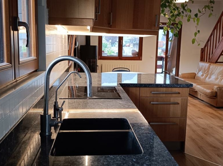 Calefacción es eléctrica con suelo radiante que se calienta con agua y en el salón hay una chimenea de leña que también calienta el sistema.