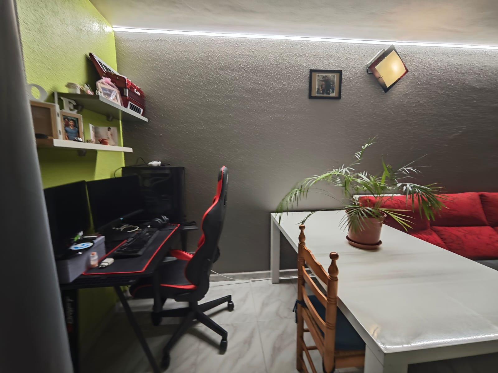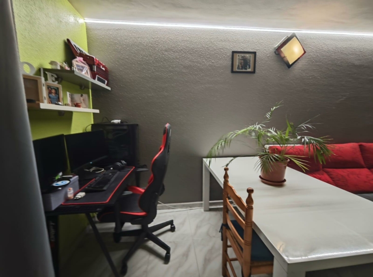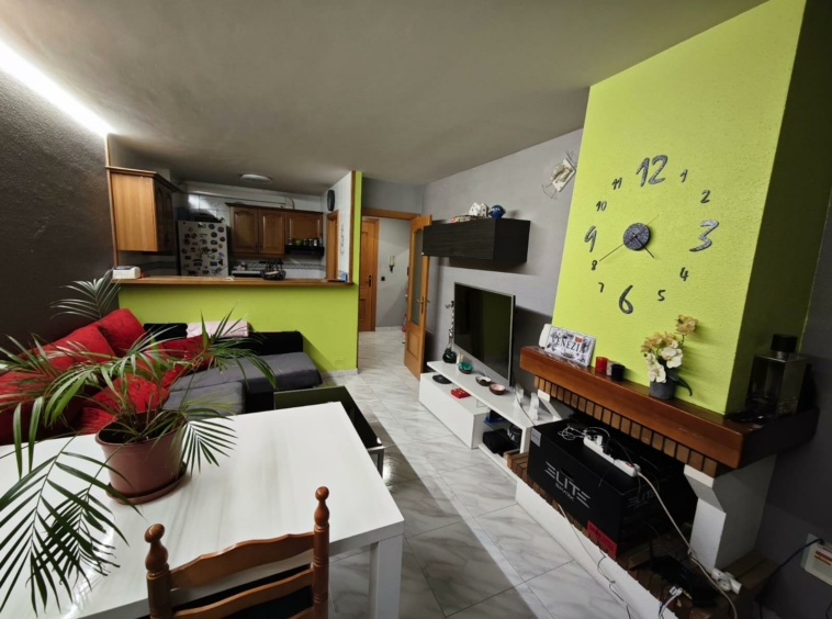 Té uns 50 m2 amb 1 habitació amb armari encastat, rebedor, saló amb sortida a un balcó, bany, safareig i cuina semioberta al saló.