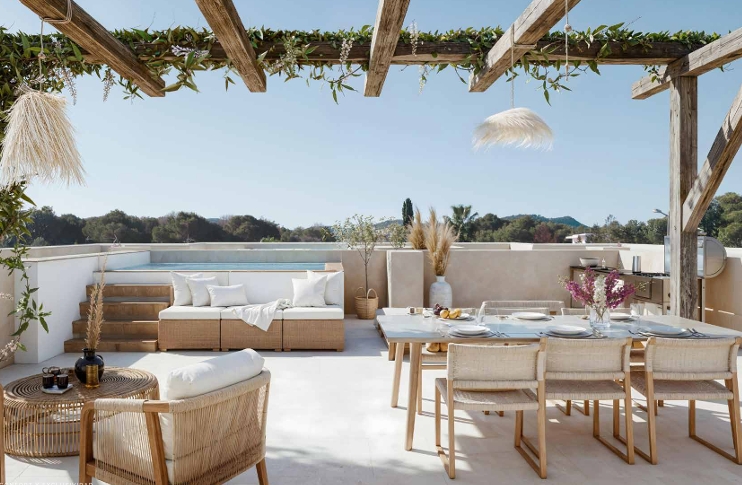 Estelle combina l’estil eivissenc modern amb la màxima comoditat, a pocs minuts de cales d’aigües cristal·lines i de tots els serveis essencials.